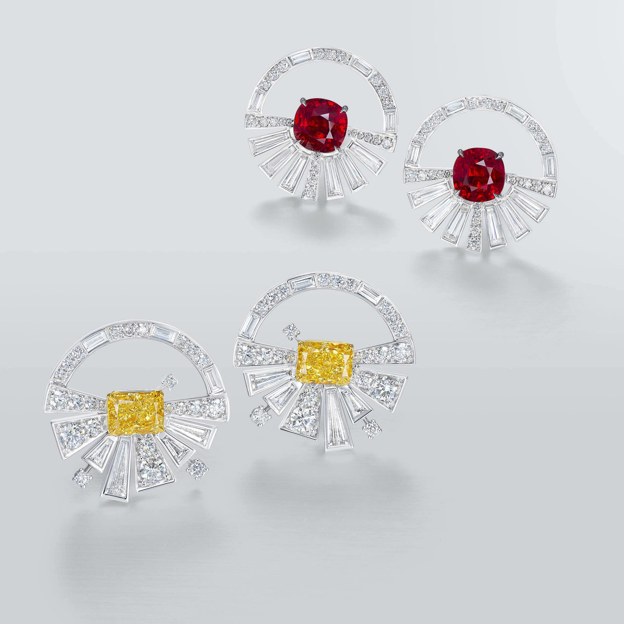 This year, we began with the very popular Mosaic earrings, one of the most distinctive designs in our new collection. Intricate and asymmetrical, the eye is drawn to each stone which appear to be almost floating. From there, other designs were born, designs that take their cue from the traditional cluster and droplet patterns but with a much more contemporary look and feel. Like the Mosaic, spacing is prevalent to showcase the intricacy of these creations and allow each stone to radiate.