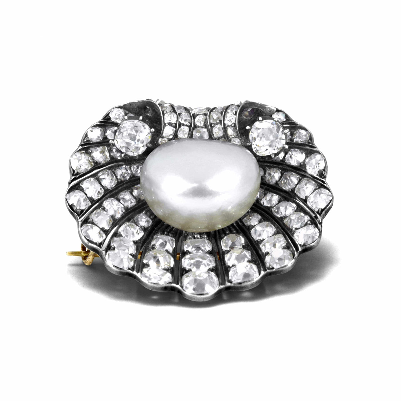 Natural Pearl and Diamond Brooch, circa 19th Century