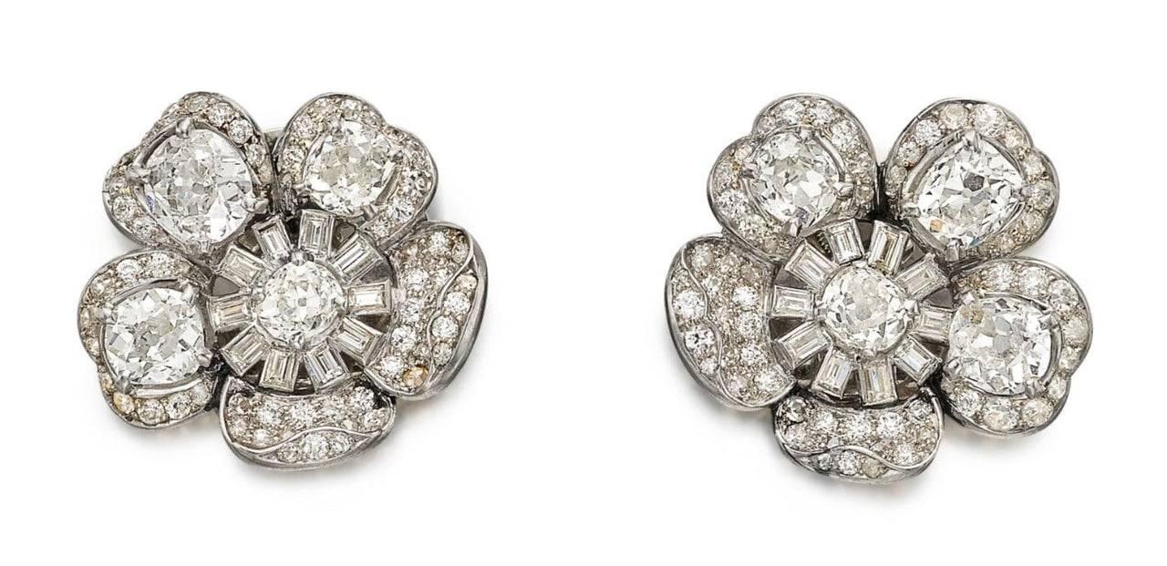 Old Mine Cut Diamond Floral Earrings, circa 1944, by Van Cleef & Arpels