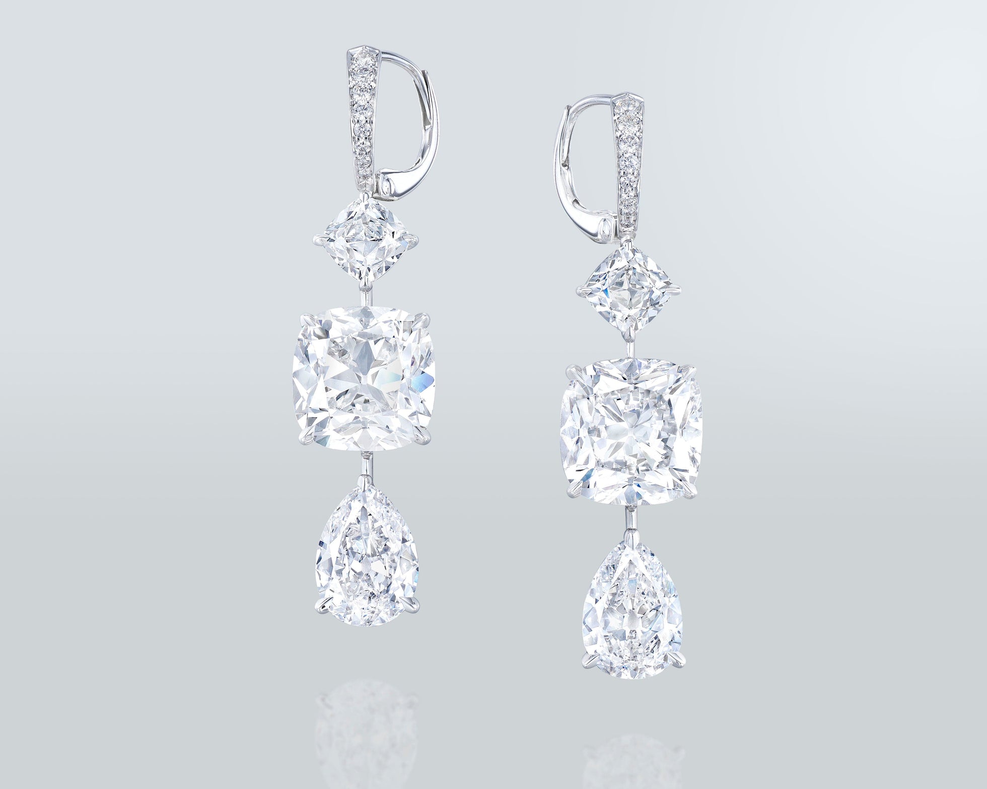 Featuring a pair of 5.09 and 5.05 carat E colour Antique Cushion Cut Diamonds