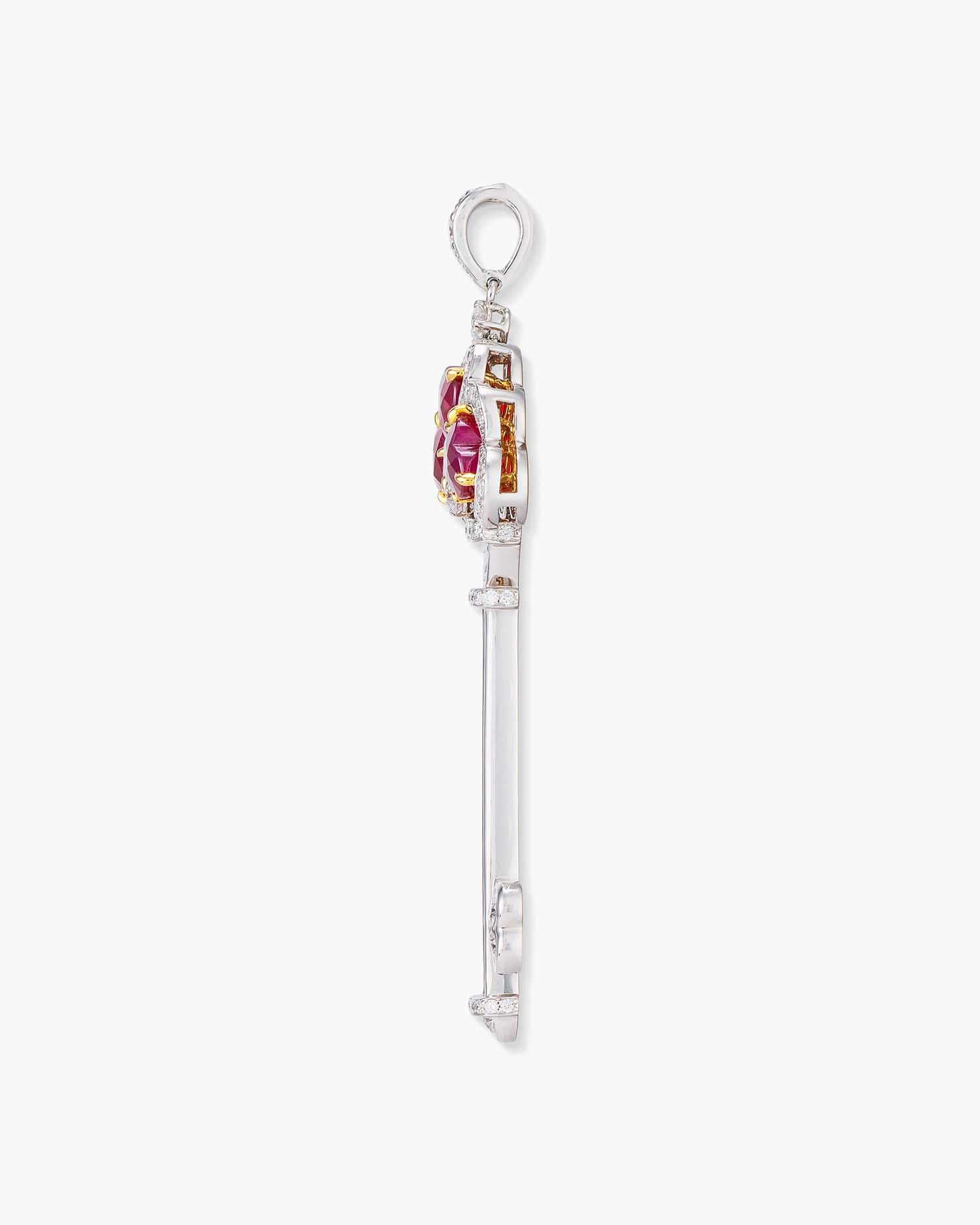 Heart Shape Burmese Ruby and Diamond Key Pendant Necklace, 4.60 carats