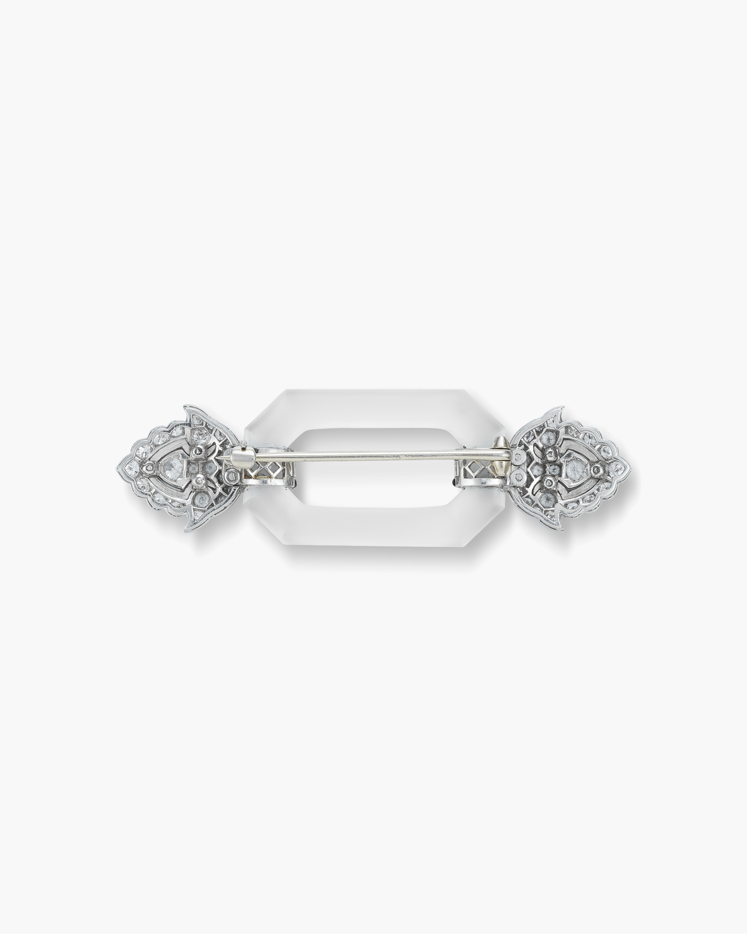 Art Deco Diamond, Rock Crystal and Black Enamel Brooch by Mauboussin