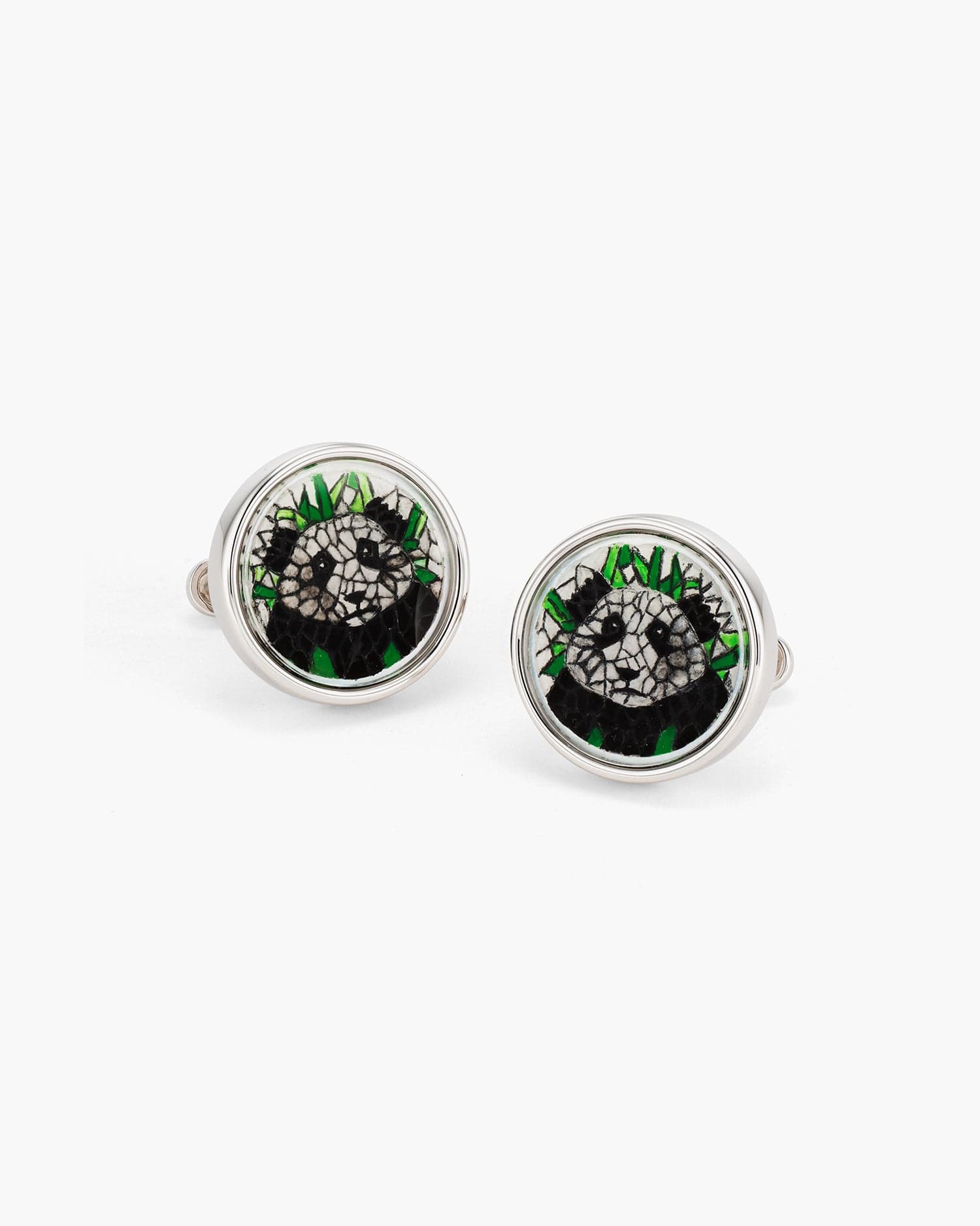 Mother of Pearl and Crystal Hand Painted Panda Cufflinks