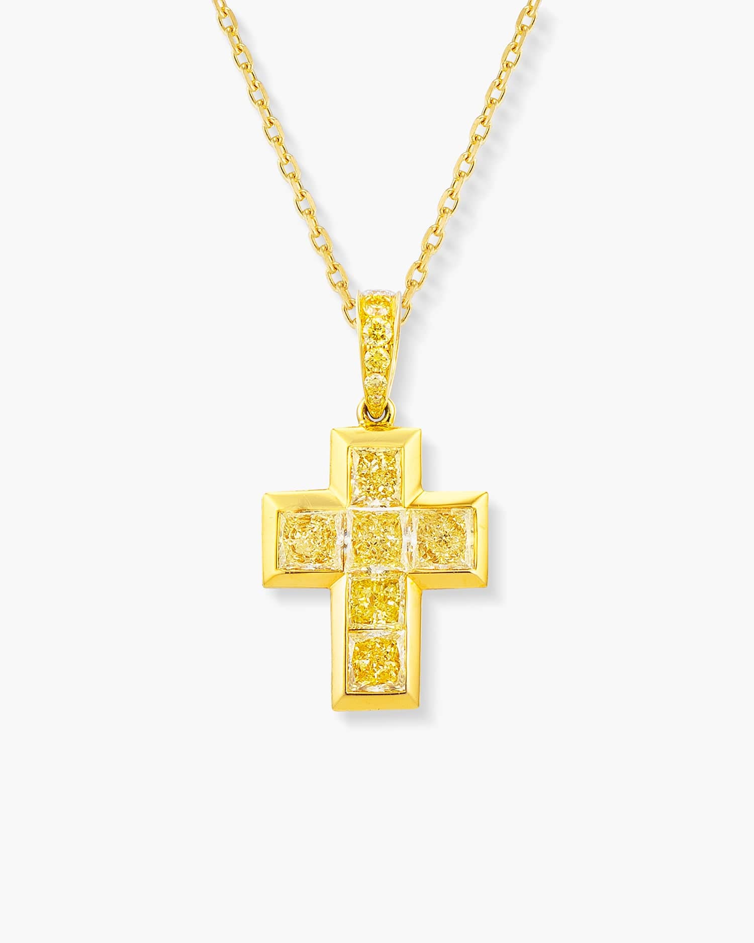 Princess Cut Yellow and White Diamond Cross Pendant Necklace, 1.77 carats