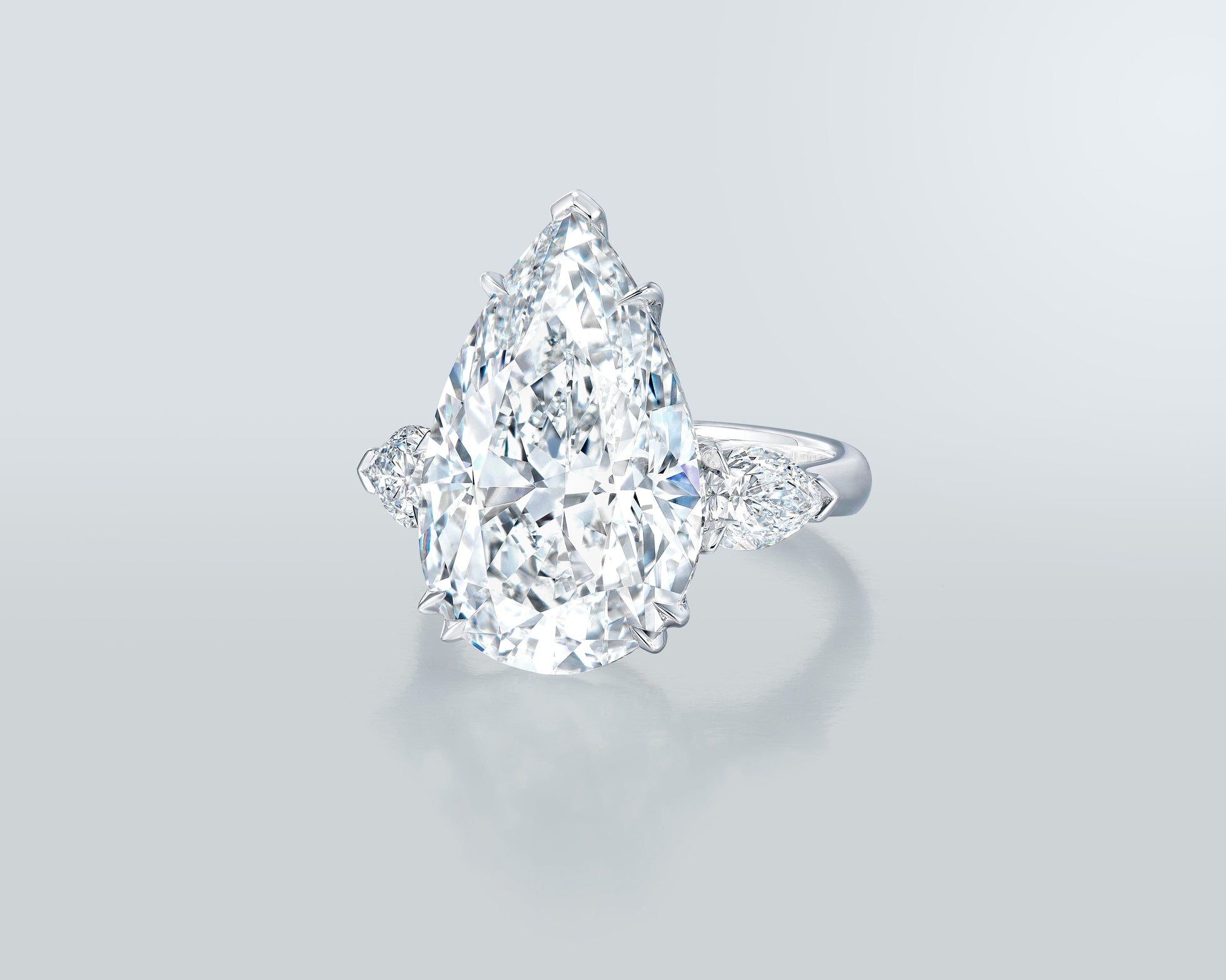 Featuring an 11.10 carat E colour Pear Shape Diamond