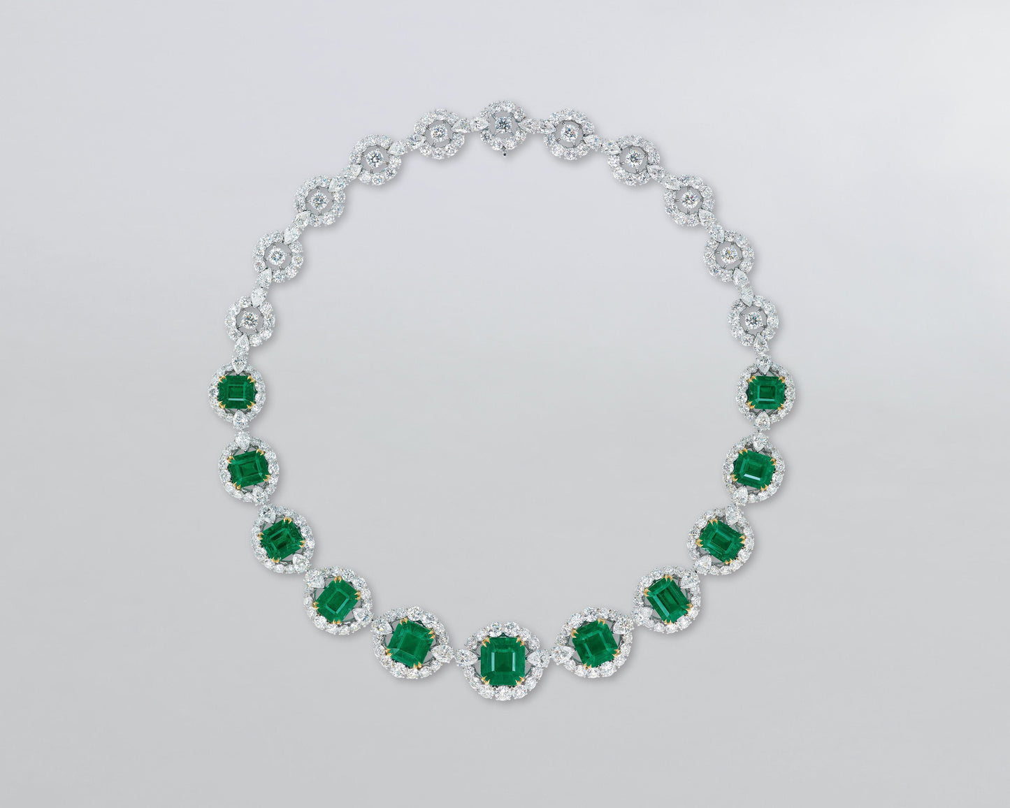 Featuring 45.28 carats of Emerald Cut Colombian Emeralds