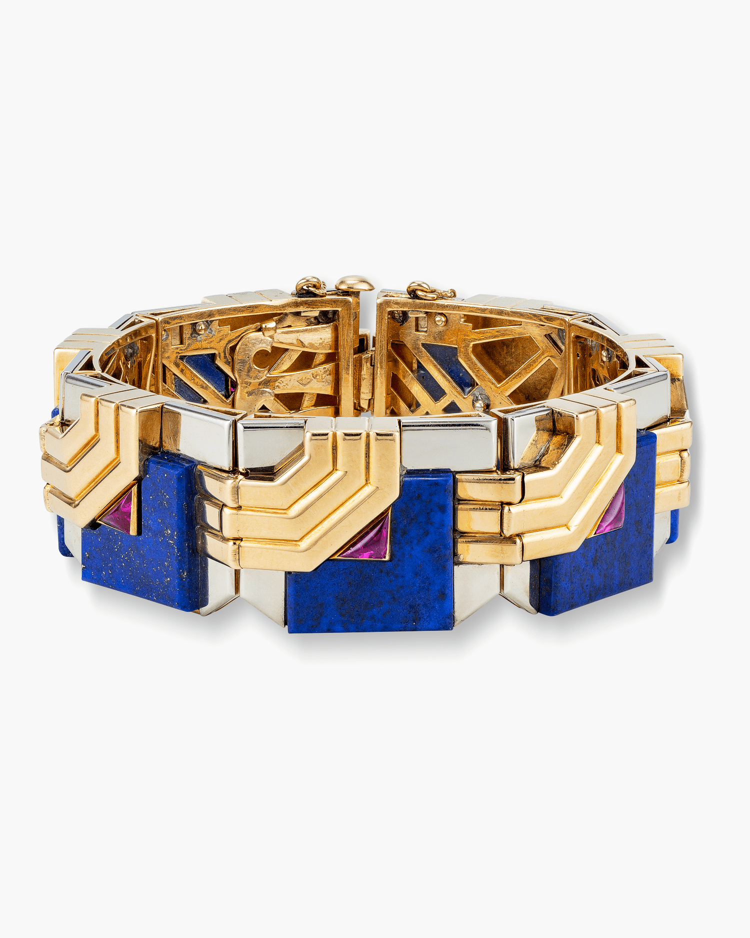 Art Deco Lapis Lazuli and Ruby Bracelet set in White and Yellow Gold by Boucheron