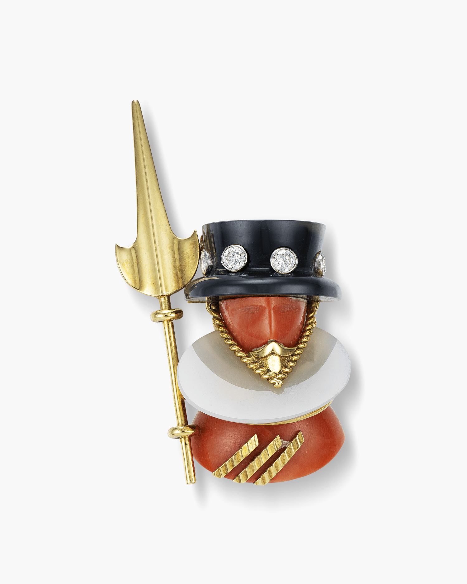 Estate Diamond, Coral, Onyx and Agate Beefeater Brooch by Cartier